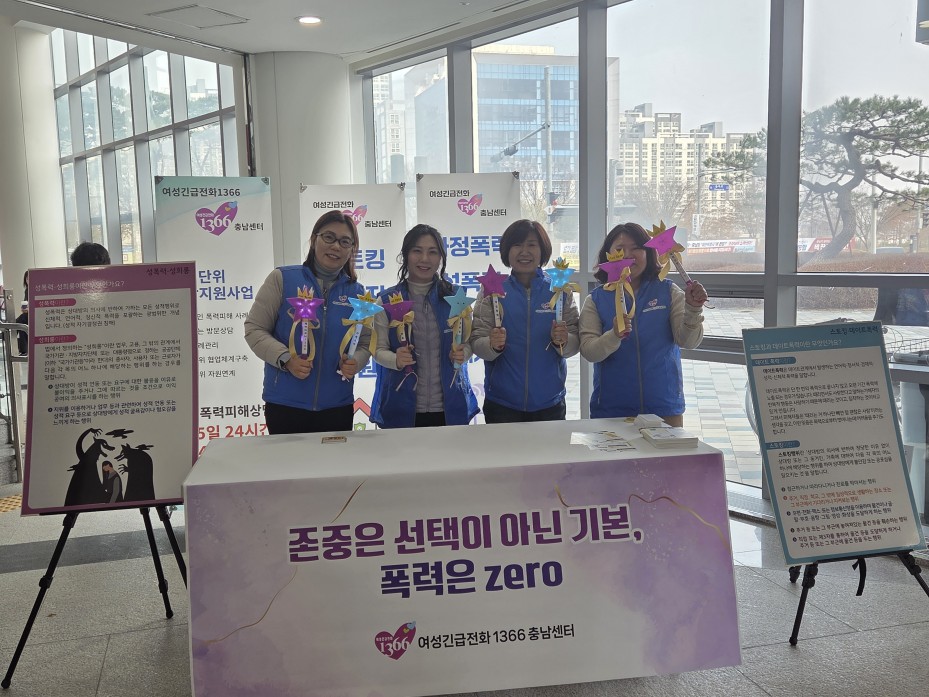 -1366충남센터는 3.8세계여성의 날 기념식 참석 및 여성폭력예방 캠페인을 진행했습니다.